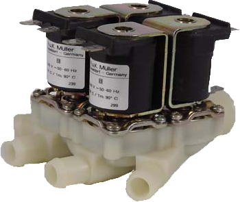 U bevindt zich hier » Productencatalogus » A.u.K. Müller » Magneetventielen » Magneetventielen Kunststof » Magneetventielen indirect gestuurd » Magneetventiel, kunststof, indirect gestuurd (Servo), NC, DN10, viervoudig recht, Tule / draad