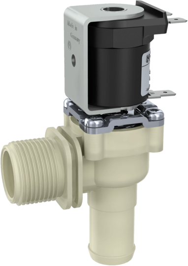 U bevindt zich hier » Productencatalogus » A.u.K. Müller » Magneetventielen » Magneetventielen Kunststof » Magneetventielen indirect gestuurd » Magneetventiel, kunststof, indirect gestuurd (Servo), NC, DN13, enkel haaks, draad / Tule