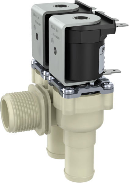 U bevindt zich hier » Productencatalogus » A.u.K. Müller » Magneetventielen » Magneetventielen Kunststof » Magneetventielen indirect gestuurd » Magneetventiel, kunststof, indirect gestuurd (Servo), NC, DN13, dubbel haaks, Tule / draad
