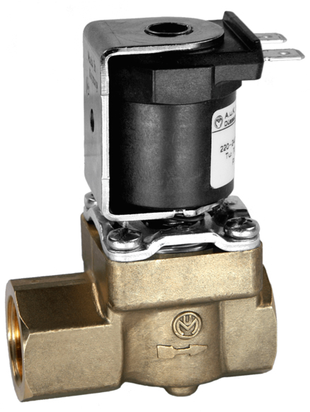 Magneetventiel, messing, indirect gestuurd (Servo), NC, DN13, enkel recht, binnendraad