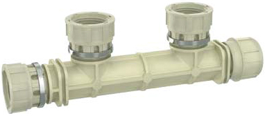 U bevindt zich hier » Productencatalogus » A.u.K. Müller » Vuilfilters en Verdelers » Verdeler, kunststof, 2 groepen, DN17, G3/4", Wartelaansluiting