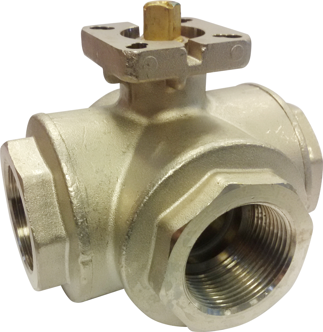U bevindt zich hier » Productencatalogus » Effebi » Kogelafsluiters » Messing Kogelkraan, 3-weg, ISO-Top, Ball-O-Matic, T-boring, binnendraad