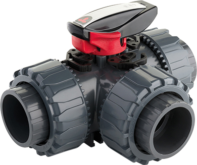 U bevindt zich hier » Productencatalogus » Effebi » Kogelafsluiters » PVC Kogelkraan, 3-weg, lijmaansluiting, ISO-Top, T-boring