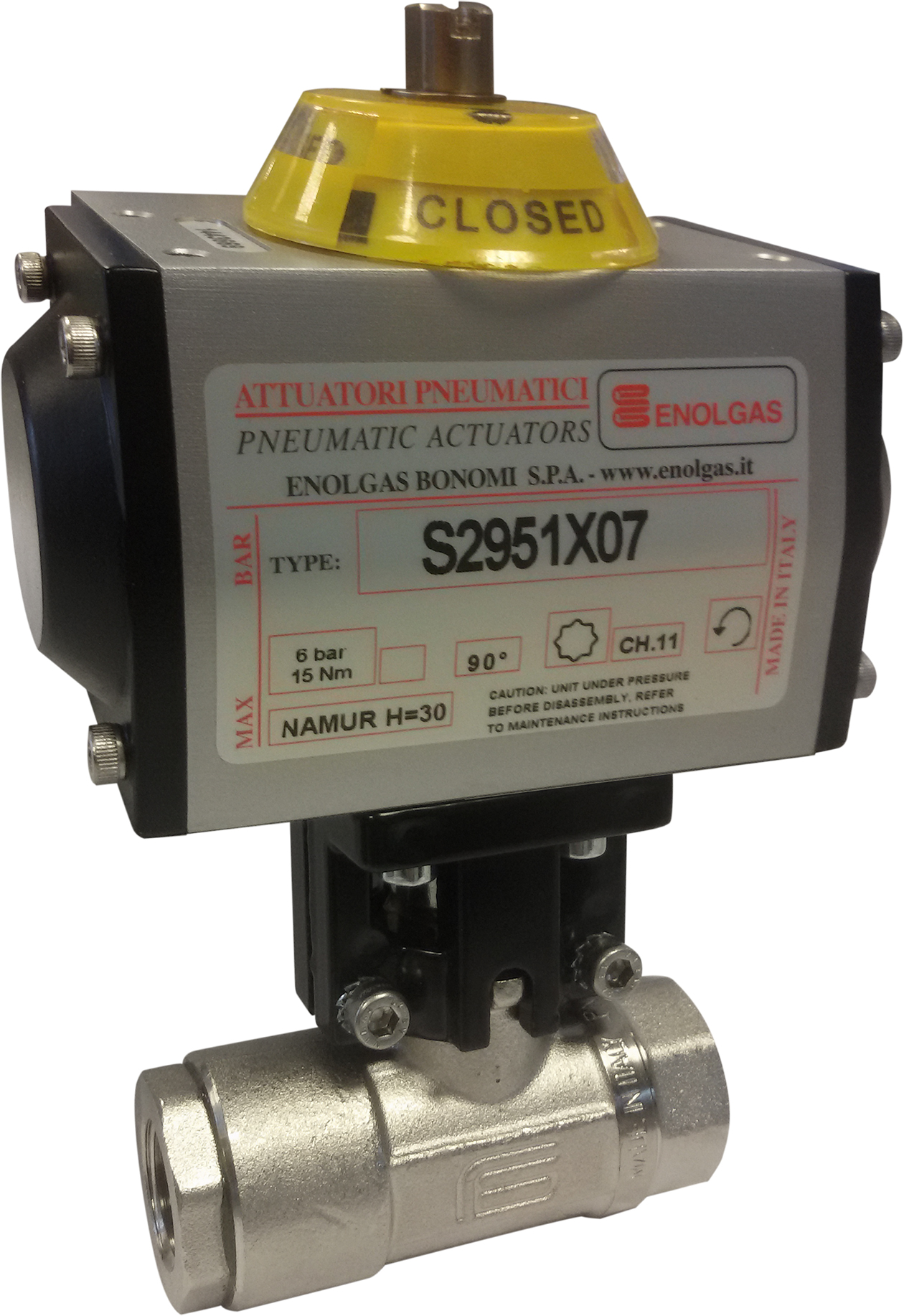 U bevindt zich hier » Productencatalogus » Enolgas » Pneumatische Kogelkranen » Pneumatische Hogedruk kogelkranen » Hogedruk kogelkraan, 2-weg, Messing, ISO-Top, PN210, binnendraad, pneumatisch enkelwerkend