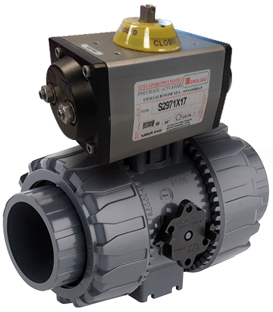 U bevindt zich hier » Productencatalogus » Enolgas » Pneumatische Kogelkranen » Pneumatische PVC kogelkranen » PVC Kogelkraan, 2-weg, lijmaansluiting, ISO-Top, pneumatisch enkelwerkend