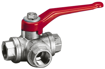 U bevindt zich hier » Productencatalogus » Fratelli Pettinaroli » Kogelafsluiters » 3-weg Kogelkranen » Kogelkraan, 3-weg, binnendraad, messing verchroomd, L-boring, zwaar model