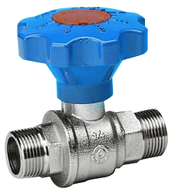 U bevindt zich hier » Productencatalogus » Fratelli Pettinaroli » Kogelafsluiters » Sluitvertragende Kogelkranen » Kogelkraan, 2-weg, buitendraad, messing verchroomd, volle doorlaat, vertragingsknop, zwaar model
