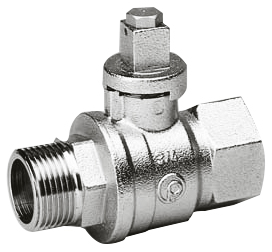 U bevindt zich hier » Productencatalogus » Fratelli Pettinaroli » Kogelafsluiters » Vergrendelbare Kogelkranen » Kogelkraan, 2-weg, messing verchroomd, volle doorlaat, binnen- buitendraad, zwaar model, Spindelvergrendeling