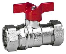U bevindt zich hier » Productencatalogus » Fratelli Pettinaroli » Kogelafsluiters » Vlinderhendel Kogelkranen » Kogelkraan, 2-weg, knel, messing verchroomd, volle doorlaat, vlinderhendel, zwaar model