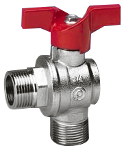U bevindt zich hier » Productencatalogus » Fratelli Pettinaroli » Kogelafsluiters » Vlinderhendel Kogelkranen » Kogelkraan, 2-weg, haaks, buitendraad, messing verchroomd, gereduceerde doorlaat, zwaar model