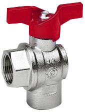 U bevindt zich hier » Productencatalogus » Fratelli Pettinaroli » Kogelafsluiters » Vlinderhendel Kogelkranen » Kogelkraan, 2-weg, haaks, binnendraad, messing verchroomd, gereduceerde doorlaat, zwaar model