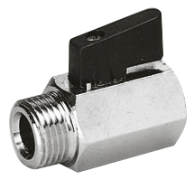 U bevindt zich hier » Productencatalogus » Fratelli Pettinaroli » Kogelafsluiters » Mini Kogelkranen » Mini kogelkraan, 2-weg, binnen- buitendraad, messing verchroomd, volle doorlaat, hendel recht, zwaar model