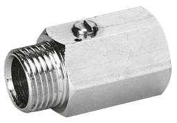 U bevindt zich hier » Productencatalogus » Fratelli Pettinaroli » Kogelafsluiters » Mini Kogelkranen » Mini kogelkraan, 2-weg, binnen- buitendraad, messing verchroomd, volle doorlaat, schroefgleuf