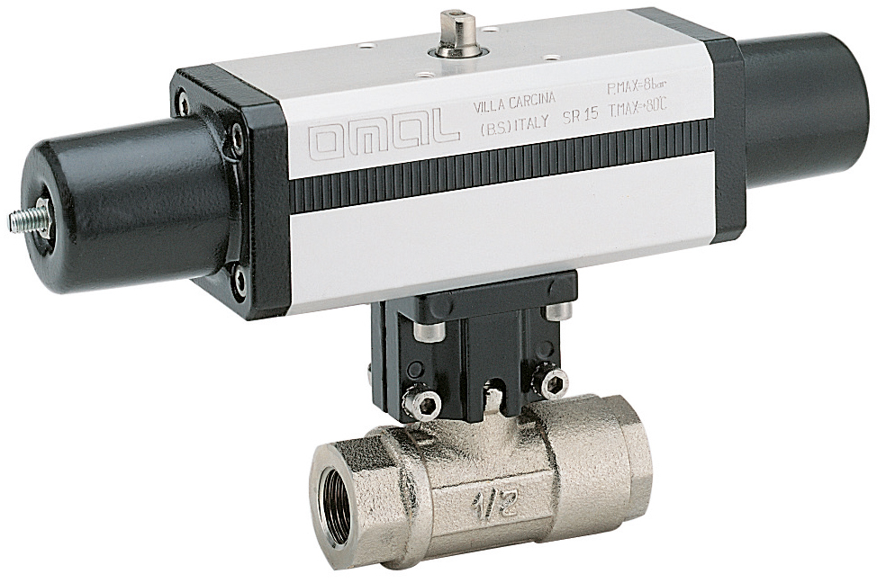 U bevindt zich hier » Productencatalogus » Omal » Pneumatisch bediende kogelafsluiters » Pneumatisch bediende hoge druk Kogelafsluiters » Enkelwerkende hoge druk pneumatische kogelkranen » Pneumatische Kogelkraan, 2-weg, messing, hoge druk, binnendraad, gereduceerd, enkelwerkende aandrijving (SR)
