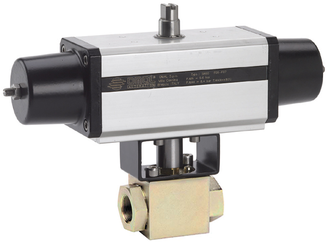 U bevindt zich hier » Productencatalogus » Omal » Pneumatisch bediende kogelafsluiters » Pneumatisch bediende hoge druk Kogelafsluiters » Enkelwerkende hoge druk pneumatische kogelkranen » Pneumatische Kogelkraan, 2-weg, carbonstaal, hoge druk, binnendraad, enkelwerkende aandrijving (SR)