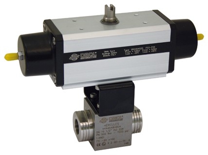 U bevindt zich hier » Productencatalogus » Omal » Pneumatisch bediende kogelafsluiters » Pneumatisch bediende hoge druk Kogelafsluiters » Enkelwerkende hoge druk pneumatische kogelkranen » Pneumatische Kogelkraan, 2-weg, carbon staal, hoge druk, buitendraad, enkelwerkende aandrijving (SR), Hercules serie