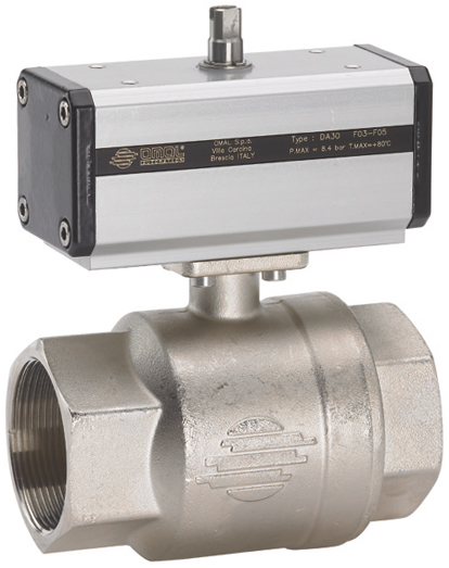 U bevindt zich hier » Productencatalogus » Omal » Pneumatisch bediende kogelafsluiters » Pneumatisch bediende messing Kogelafsluiters » Dubbelwerkende messing pneumatische kogelkranen » Pneumatische Kogelkraan, 2-weg, messing, binnendraad, dubbelwerkende aandrijving (DA), zwaar model