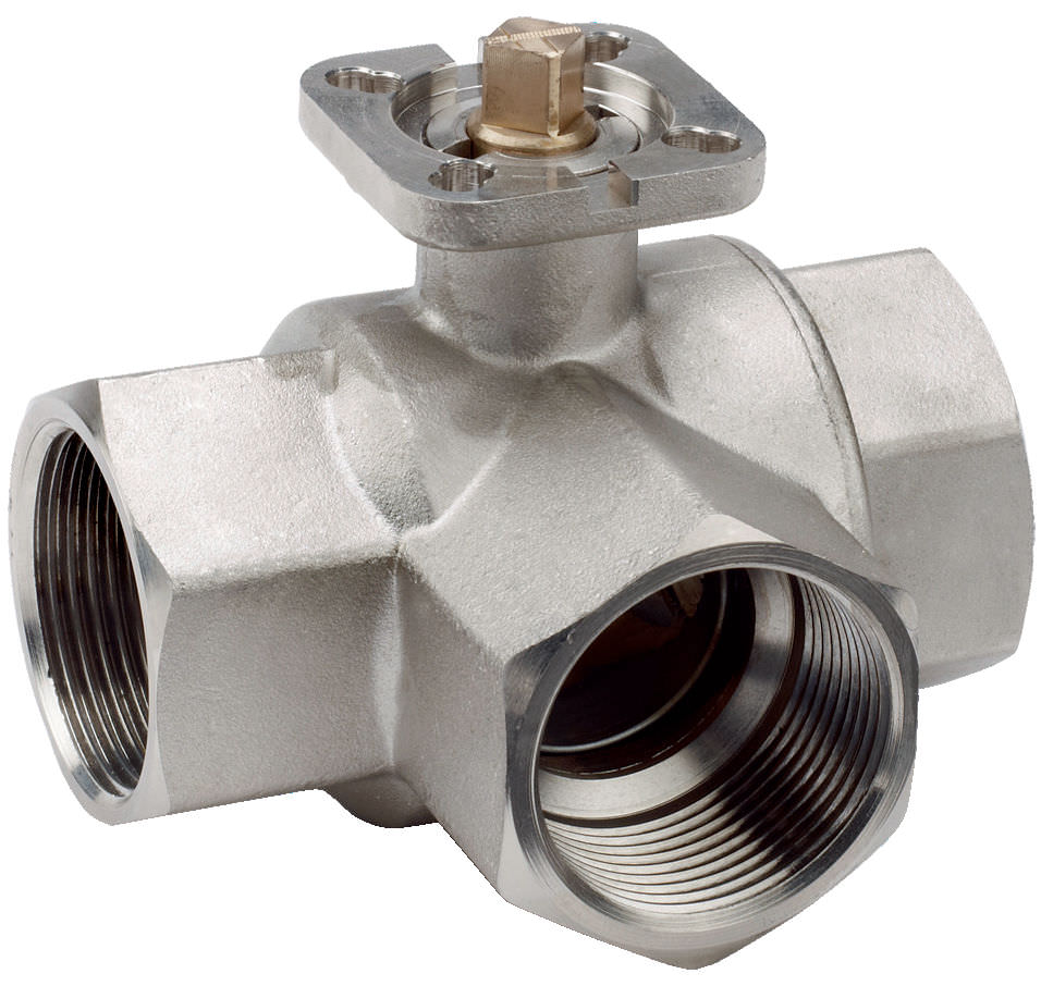 U bevindt zich hier » Productencatalogus » Omal » Pneumatisch bediende kogelafsluiters » Pneumatisch bediende messing Kogelafsluiters » Losse messing kogelkranen » OMAL Kogelkraan, 3-weg, messing verchroomd, binnendraad, PN16, L-boring