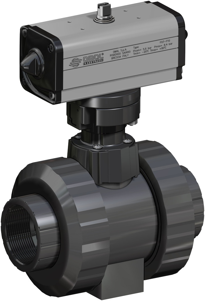 U bevindt zich hier » Productencatalogus » Omal » Pneumatisch bediende kogelafsluiters » Pneumatisch bediende PVC Kogelafsluiters » Dubbelwerkende PVC pneumatische kogelkranen » Pneumatische Kogelkraan, 2-weg, PVC, lijmaansluiting, dubbelwerkende aandrijving (DAN)