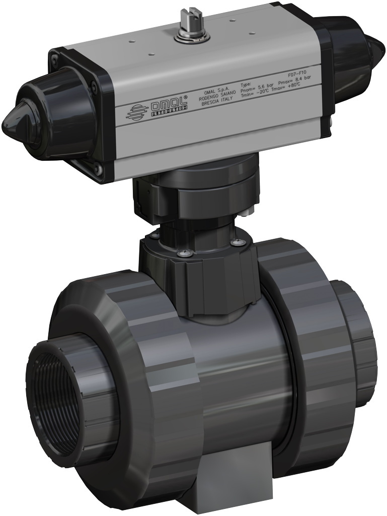 U bevindt zich hier » Productencatalogus » Omal » Pneumatisch bediende kogelafsluiters » Pneumatisch bediende PVC Kogelafsluiters » Enkelwerkende PVC pneumatisch kogelkranen » Pneumatische Kogelkraan, 2-weg, PVC, lijmaansluiting, enkelwerkende aandrijving (SRN)