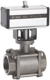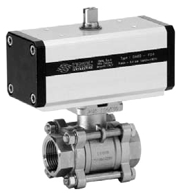 U bevindt zich hier » Productencatalogus » Omal » Pneumatisch bediende kogelafsluiters » Pneumatisch bediende RVS Kogelafsluiters » Dubbelwerkende RVS pneumatisch kogelkranen » Pneumatische Kogelkraan, 2-weg, RVS, draad of lasaansluiting, 3-delig, dubbelwerkende aandrijving (DA)
