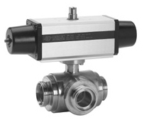 U bevindt zich hier » Productencatalogus » Omal » Pneumatisch bediende kogelafsluiters » Pneumatisch bediende RVS Kogelafsluiters » Enkelwerkende RVS pneumatisch kogelkranen » Pneumatische Kogelkraan, 3-weg, RVS, draadaansluiting, T-boring, Food, enkelwerkende aandrijving (SR)