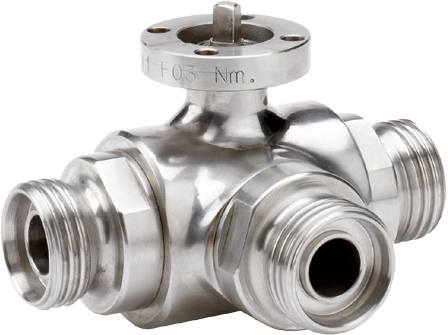 U bevindt zich hier » Productencatalogus » Omal » Pneumatisch bediende kogelafsluiters » Pneumatisch bediende RVS Kogelafsluiters » Losse RVS kogelkranen » OMAL Kogelkraan, 3-weg, RVS, draadaansluiting, T-boring, Food