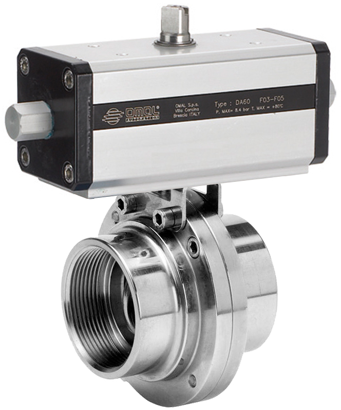 U bevindt zich hier » Productencatalogus » Omal » Pneumatisch bediende vlinderkleppen » Vlinderkleppen Foodindustrie » Pneumatisch bediend Food vlinderkleppen » OMAL Vlinderklep, Food, RVS, Zuivelkoppeling, PN6, Pneumatische dubbelwerkende aandrijving (DA)