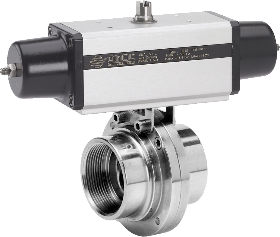 U bevindt zich hier » Productencatalogus » Omal » Pneumatisch bediende vlinderkleppen » Vlinderkleppen Foodindustrie » Pneumatisch bediend Food vlinderkleppen » OMAL Vlinderklep, Food, RVS, Zuivelkoppeling, PN6, Pneumatische enkelwerkende aandrijving (SR)