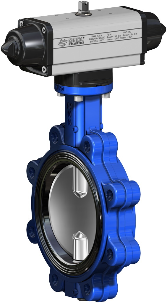 U bevindt zich hier » Productencatalogus » Omal » Pneumatisch bediende vlinderkleppen » Vlinderkleppen Lug » Pneumatisch bediend Lug vlinderkleppen » Pneumatische Vlinderklep, Lug, klepblad staal, EPDM/VITON/NBR, PN16, enkelwerkende aandrijving (SRN)