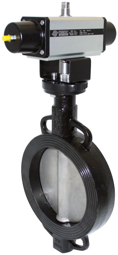 U bevindt zich hier » Productencatalogus » Omal » Pneumatisch bediende vlinderkleppen » Vlinderkleppen Metal to metal » Pneumatische bediend metal to metal vlinderkleppen » OMAL Vlinderklep, RVS, Afdichting: Metal to Metal, Wafer, Flens, PN10/16, Pneumatische enkelwerkende aandrijving (SR)